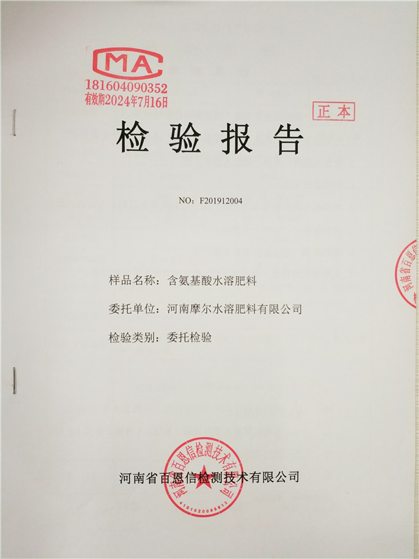 • 含氨基酸水溶肥料(液體型)檢驗報告