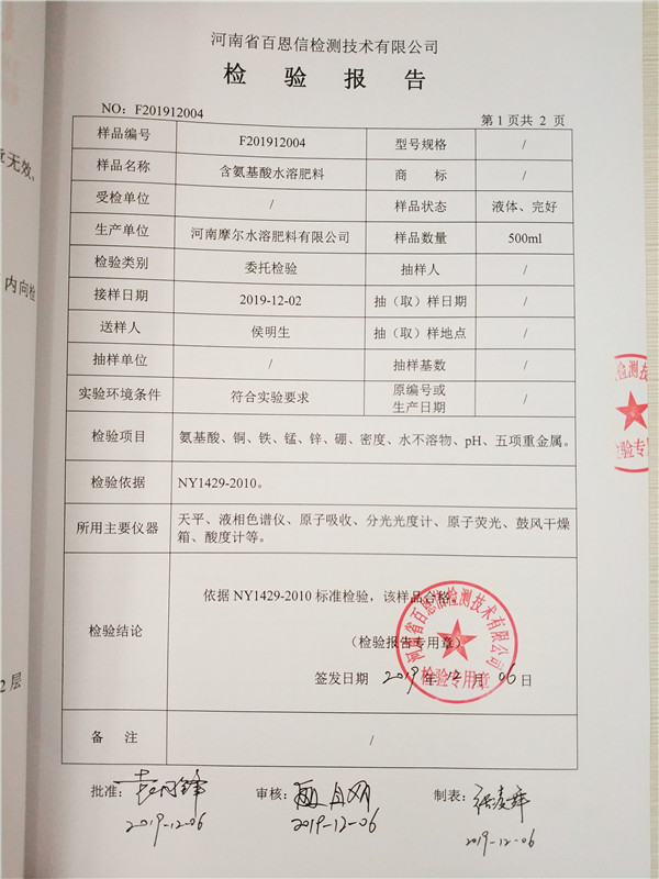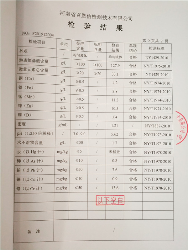 • 含氨基酸水溶肥(液體型)檢驗報告第2頁