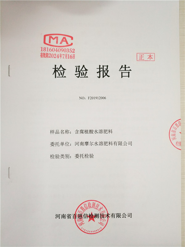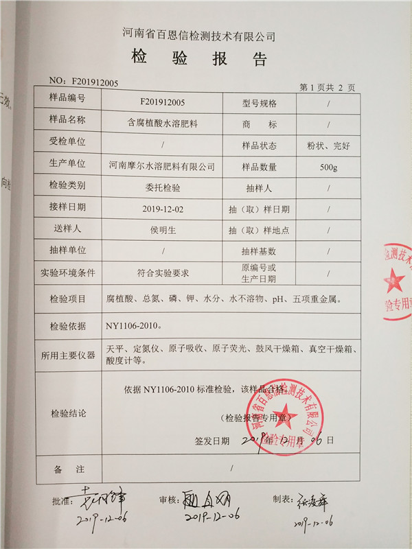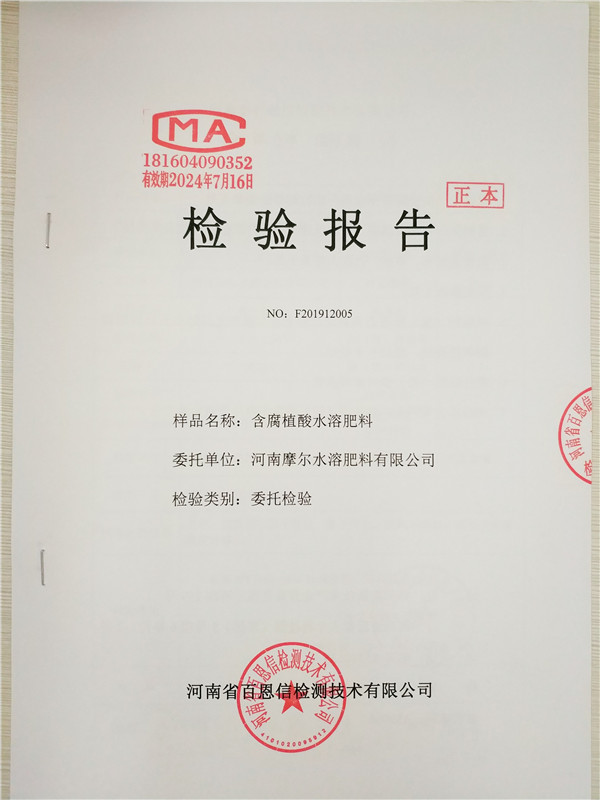 • 含腐植酸水溶肥(粉劑)檢驗報告