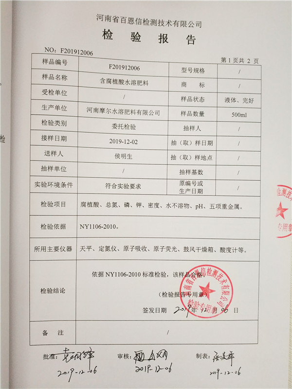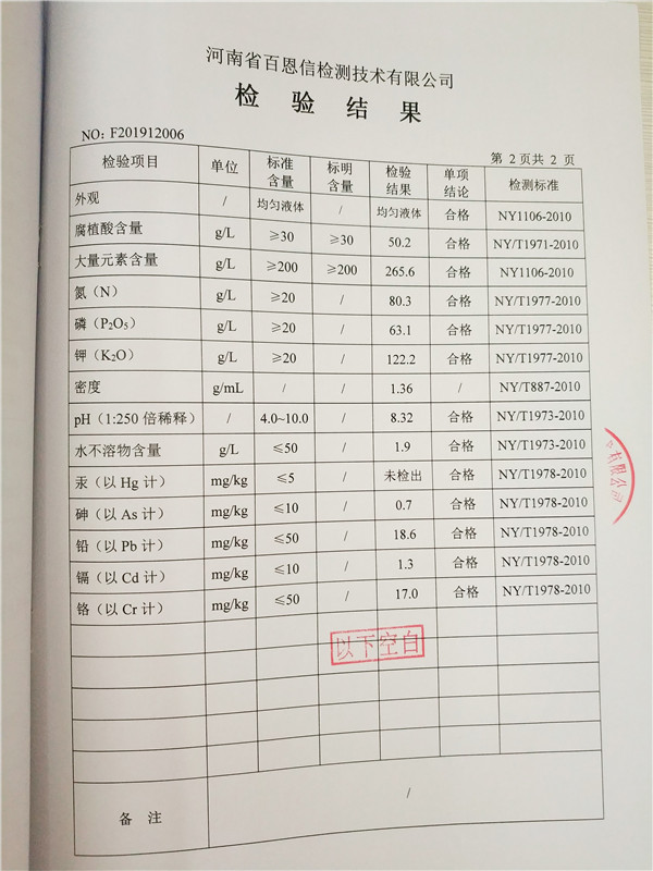 • 含腐植酸水溶肥(液體型)檢驗報告第2頁
