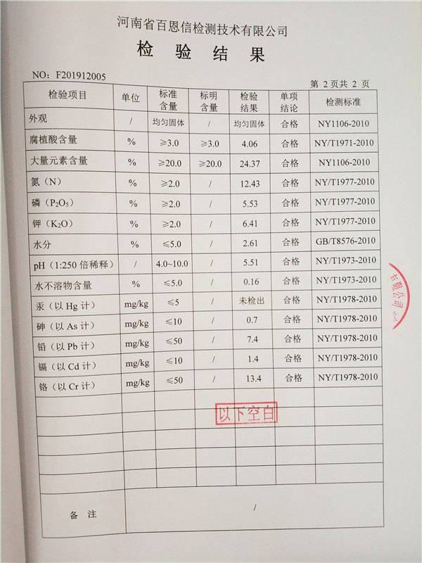 • 含腐植酸水溶肥(粉劑)檢驗報告第2頁