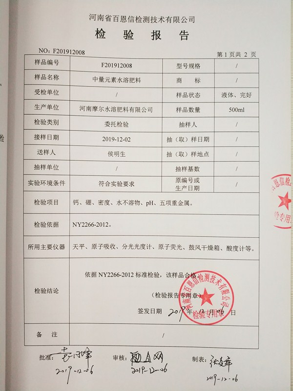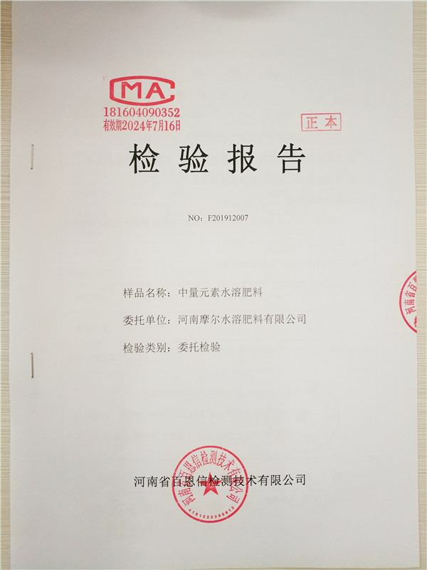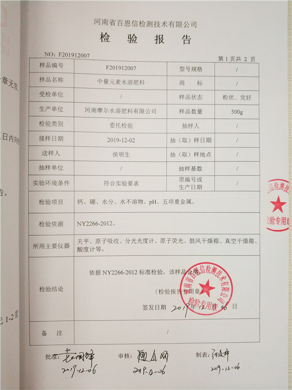 • 中量元素水溶肥(粉劑)檢驗報告第2頁