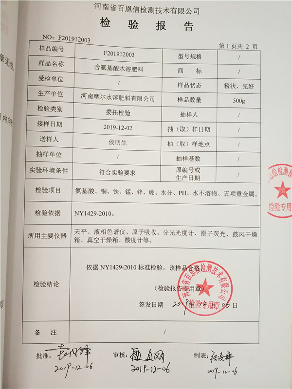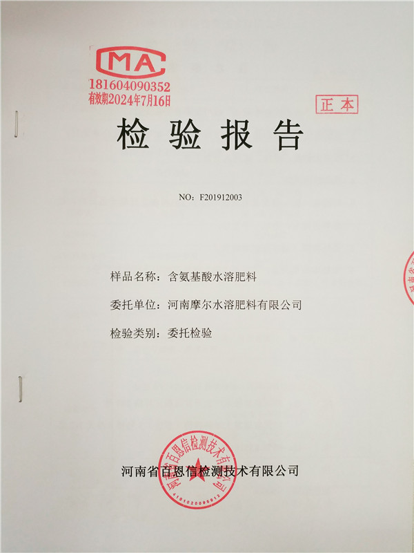 • 含氨基酸水溶肥(粉劑)檢驗報告